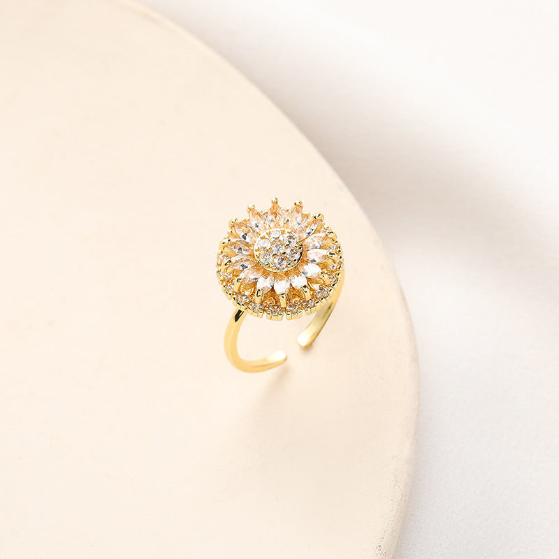 Classic Charm Sunflower Flower Stainless Steel Necklace Earrings Fashion Exquisite Micro Seed Jewelry Ring