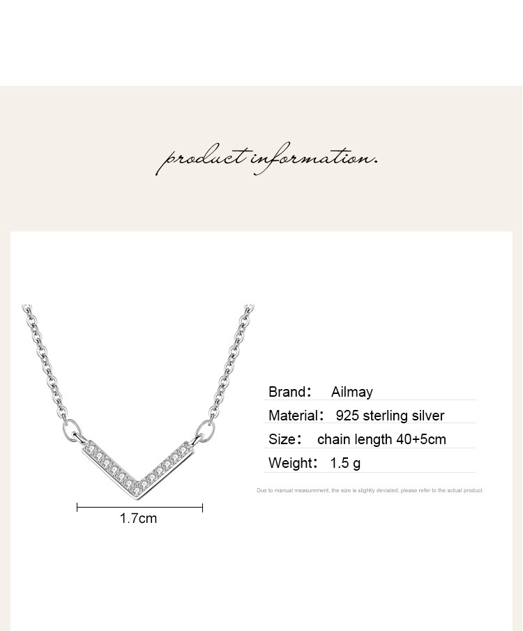 S925 Sterling Silver V-shaped Necklace Women's Full Diamond Simple